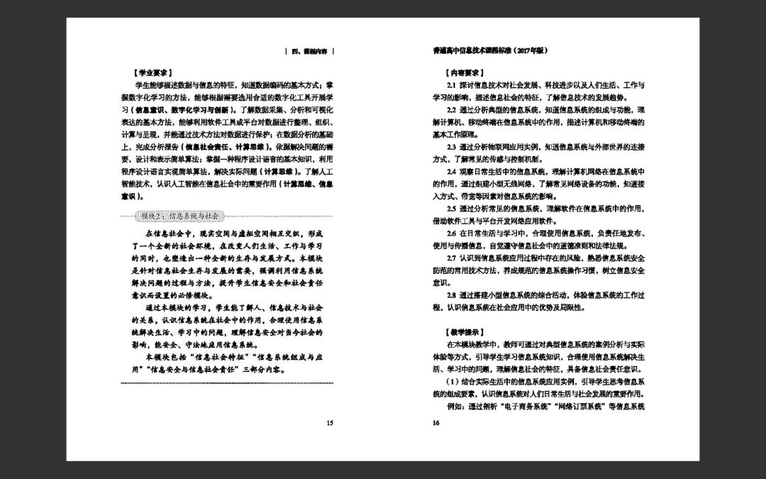 信息技术与社会的交互融合引发了数据量的迅猛增长,数据对社会生产和人们生活的影响日益凸显。本模块针对数据(包括大数据)在信息社会中的重要价值,分析数据与信息的关系,强调数据处理的基本方法与技能,发展学生利用信息技术解决问题的能力。本模块是信息技术课程后续学习的基础。 信息系统与社会