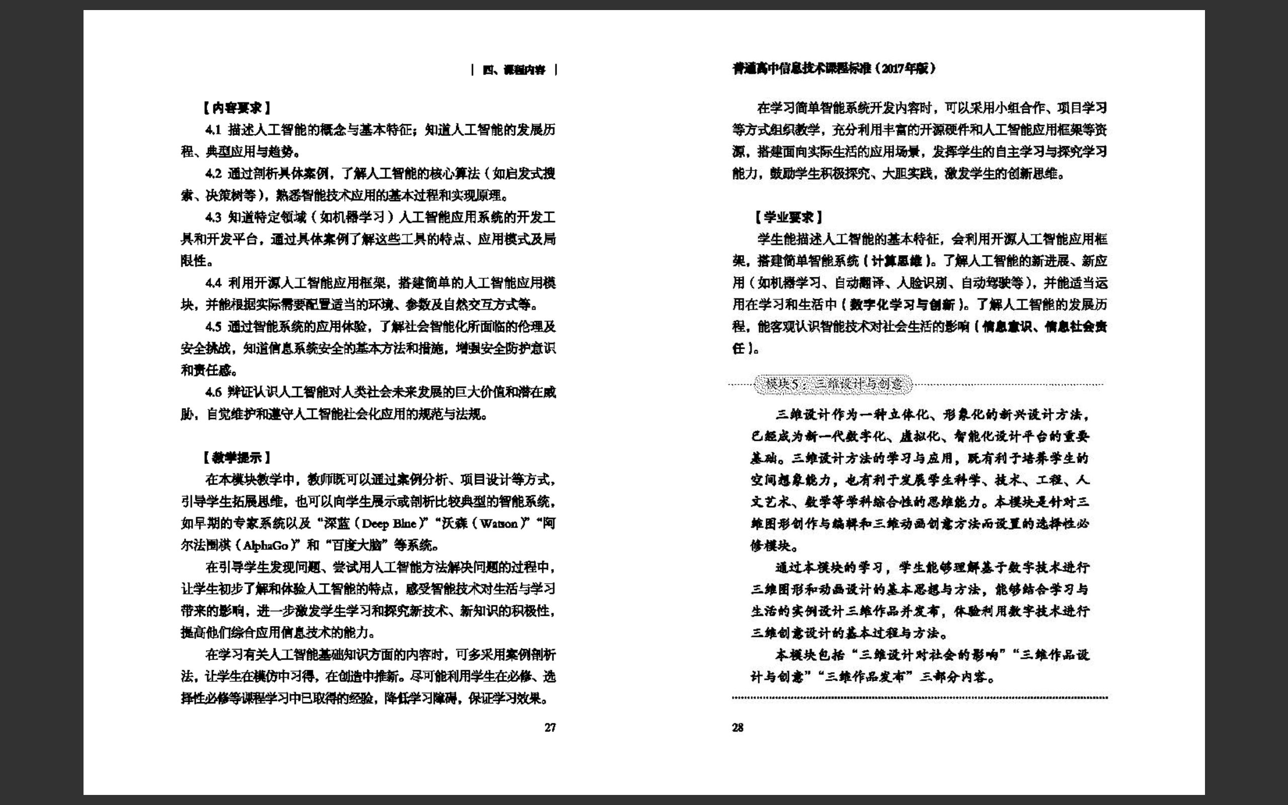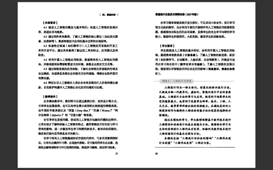 1月16日上午,教育部新闻发布会上,介绍了《普通高中课程方案和语文等学科课程标准(2017年版)》的有关情况。在此次“新课标”改革中,正式将人工智能、物联网、大数据处理、算法、开源硬件项目设计等正式划入新课标。