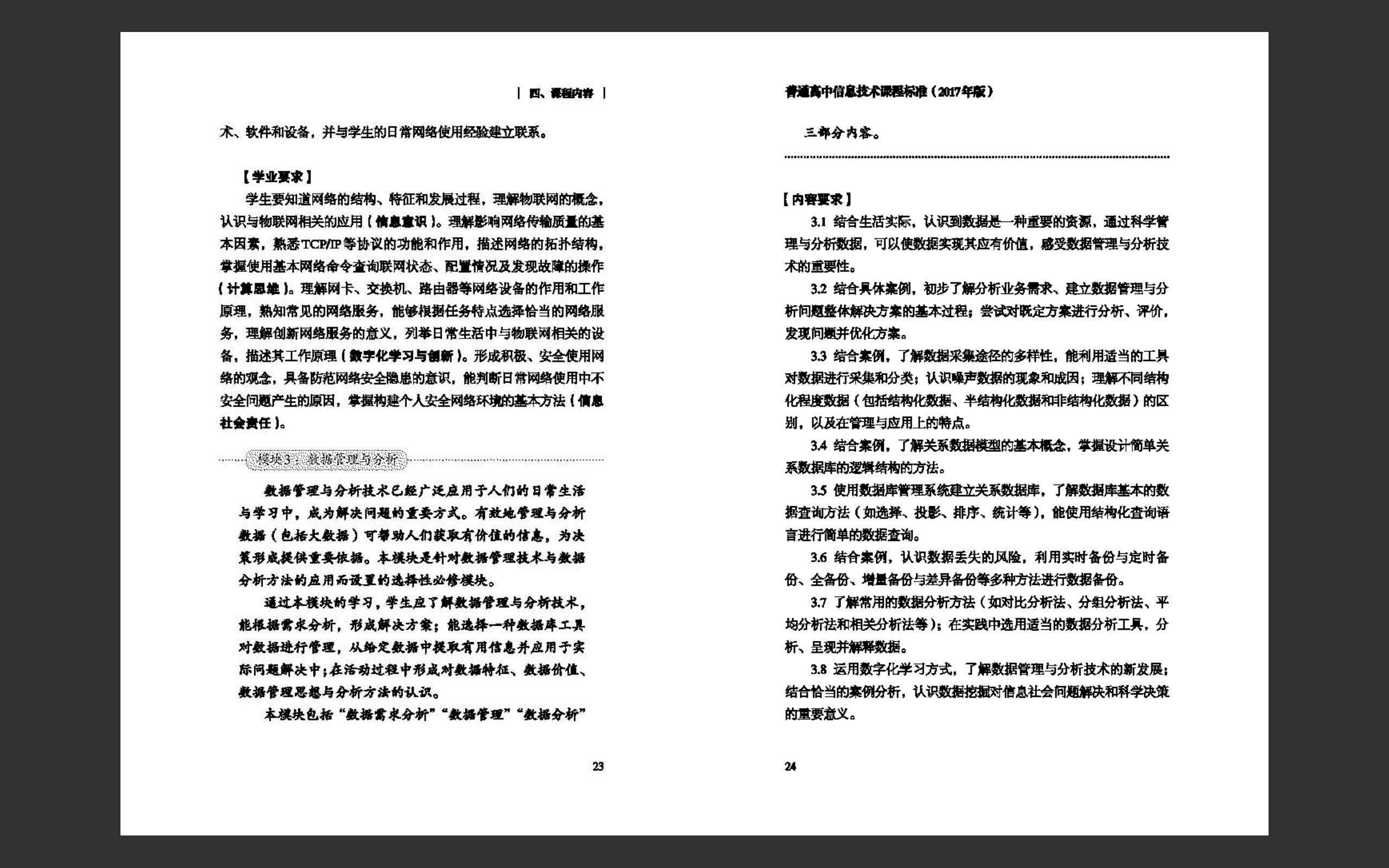 网络不但是数据传输的物理基础,也是支撑信息社会的重要基础设施。理解两络基本知识,熟练使用典型网络服务,是现代信息社会中生存与发展的基本技能之一。本模块是针对网络基本知识和实践应用而设置的选择性必修模块。 数据管理与分析
